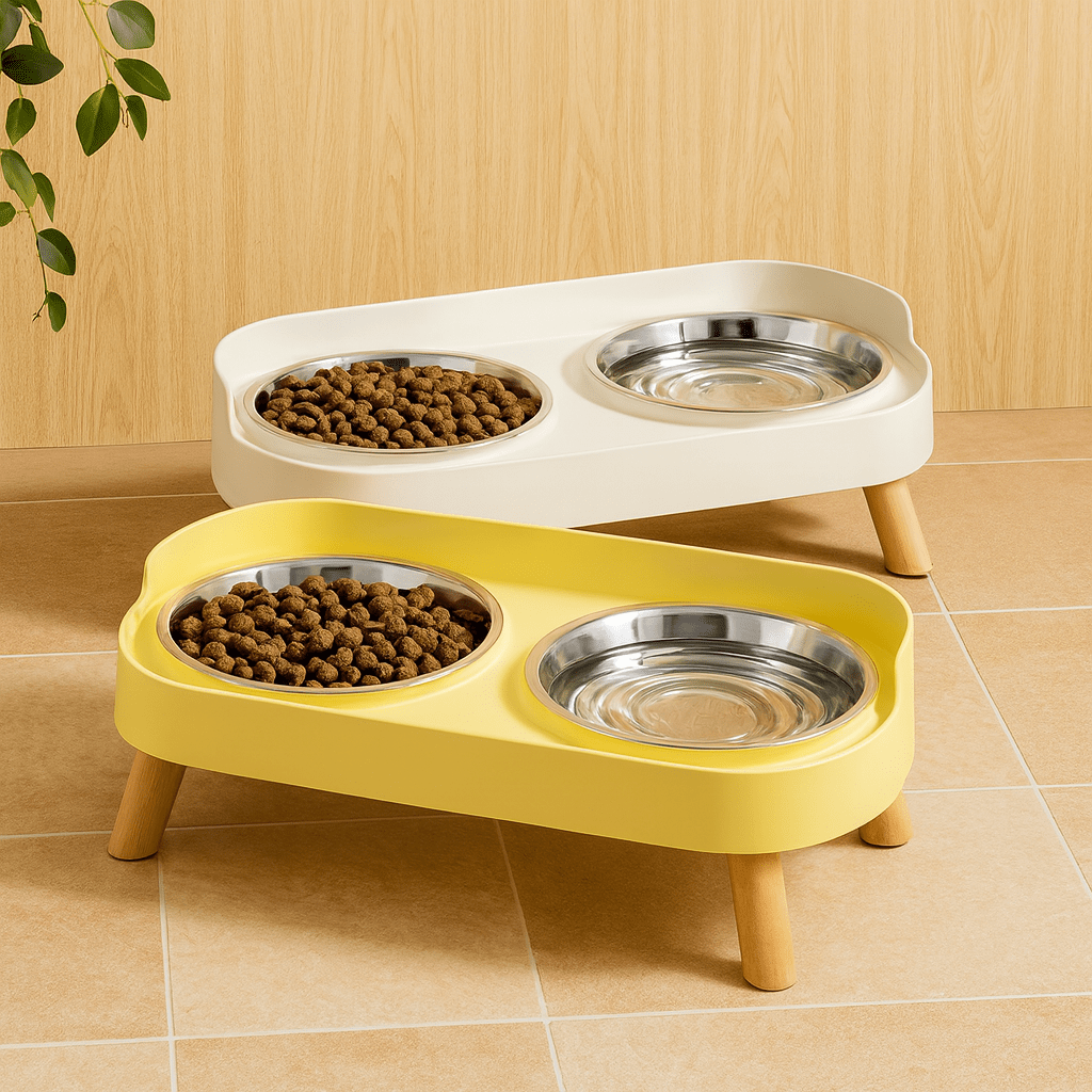En stilren och praktisk matskål med dubbla rostfria skålar – perfekt för både hundar. Den upphöjda designen ger en bekväm ätställning och minskar spill, samtidigt som den snyggt smälter in i ditt hem.